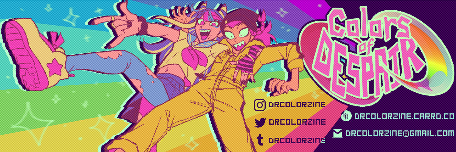 Howdy, I'm Mini and I'm super stoked to be running this zine with the rest of the Colors of Despair crew! I'm on graphics (with Key) as well as the lay of the land, and have worked on zines as both a mod and artist in the past. Is there such a thing as too many colors? We’re about to find out. Stay fresh, stay funky, and let's start this rainbow party!!